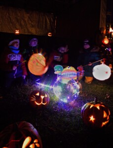 Osvětlené náměstí spoustou lucerniček, vydlabaných dýní, vůně hořících svíček, vyzdobené ulice města strašidly a dýněmi a velké množství lampiónů …. ano, je to čas lampiónového průvodu, čas, kdy pomalu končí podzim, příroda i zvířata se ukládají k zimnímu spánku, čas loučení se s letošní sezónou. Krásná procházka podvečerními ulicemi našeho města přilákalo velké množství rodin s dětmi, hrdě nesoucími své barevné lampiony v rukou. Rozzářené oči sledovaly hořící svíčky, vyhledávaly své dýně, které si vlastnoručně ve školní družině pod vedením paní učitelek vydlabaly. Velký obdiv a potlesk si právem zasloužila šermířská skupina Non Sancti z Olomouce, která na fotbalovém hřišti ukázala své umění v ladných pohybech a různých kreacích s ohni a barevnými světelnými efekty. Tento krásný podvečer plný světel a ohňů jsme zakončili velmi oblíbeným ohňostrojem.